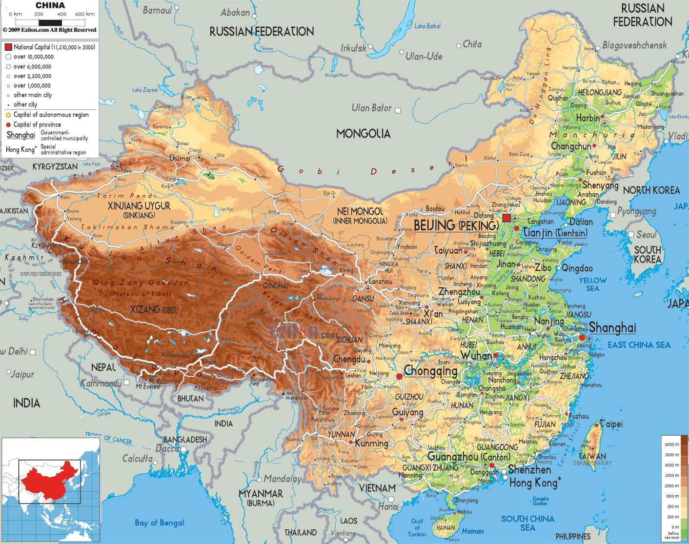 Kína í kortinu. Höku kort (Austur-Asíu - Asíu) til að prenta. Höku kort (Austur-Asíu - Asíu) til að sækja.
